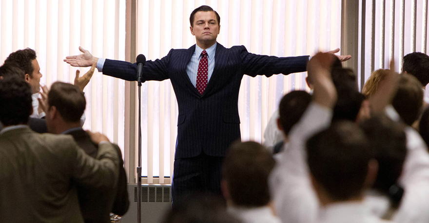 Il s’agit d’une scène culte du film "Le Loup de Wall Street" avec Leonardo DiCaprio dans le rôle de Jordan Belfort. Jordan Belfort a le chien de garde du marché boursier américain a ses pieds et son compte bancaire est bien garni. Et pourtant, il lui est impossible de quitter son entreprise. Il s'agit du sujet principal de son discours (‘The show goes on’) mais marque aussi la fin de son règne dans le film.