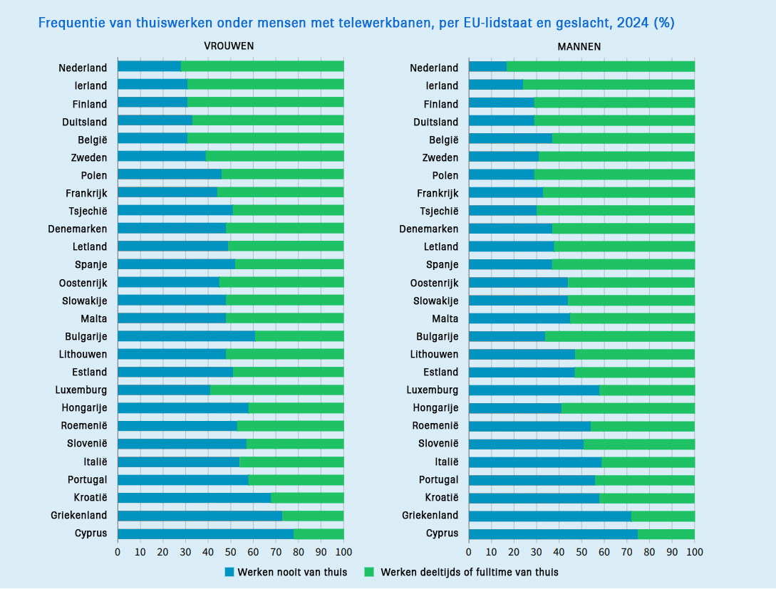 Nederlanders mogen het meest thuiswerken, Cyprioten het minst. En de Belgen?